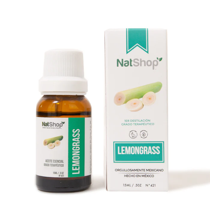 El aceite esencial de lemongrass (limoncillo) se extrae de la planta de cymbopogon citratus (zacate limón) y es conocido por su aroma fresco y cítrico. Tiene propiedades antimicrobianas y se utiliza en aromaterapia para estimular, aliviar el estrés y mejorar el estado de ánimo. También se emplea en productos de cuidado personal y repelentes de insectos. Debe diluirse antes de aplicarse en la piel y evitar su uso en concentraciones altas, ya que puede causar irritación.