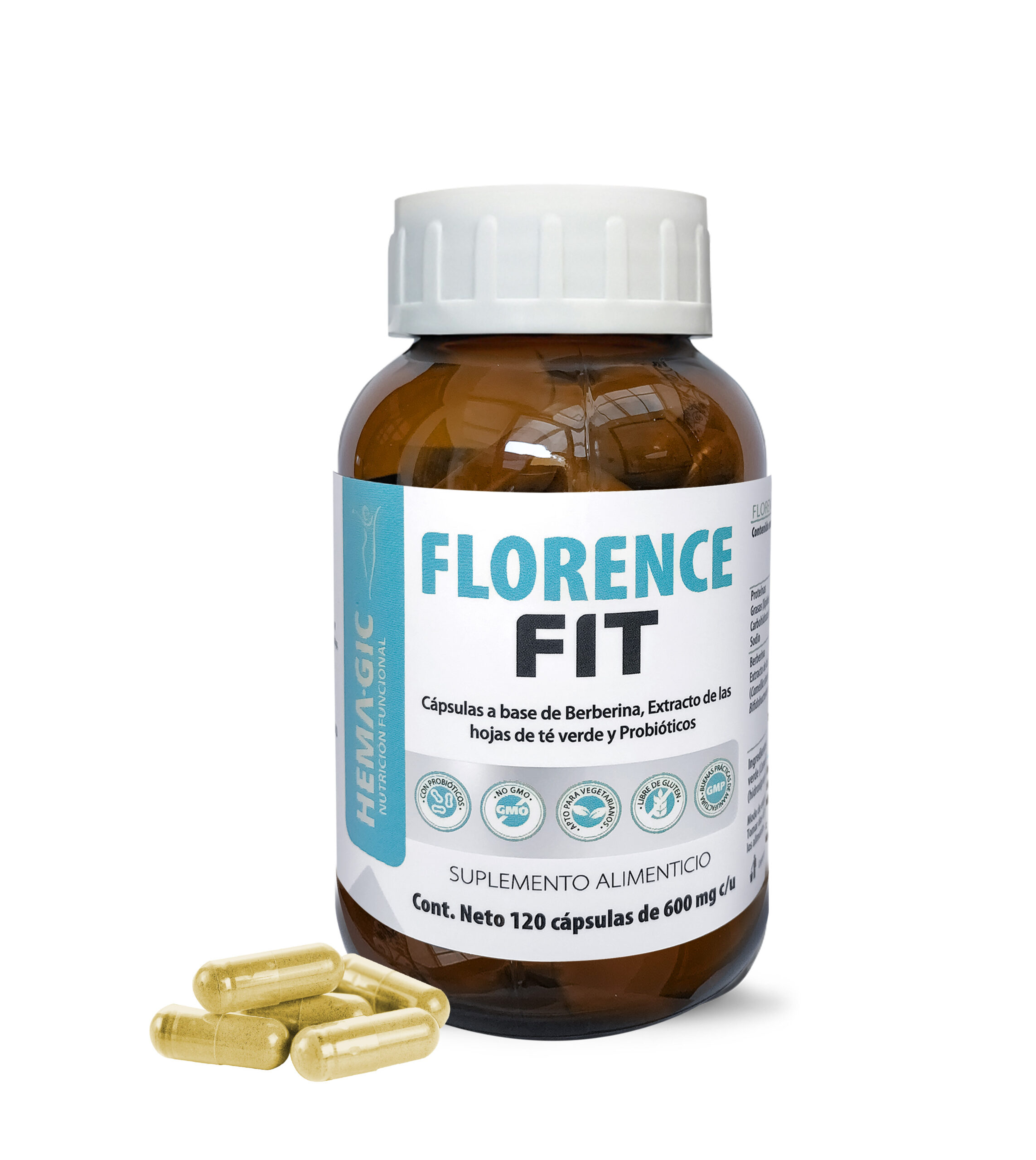 FLORENCE FIT: Cápsulas a base de Berberina, Extracto de las hojas de té verde y Probióticos.