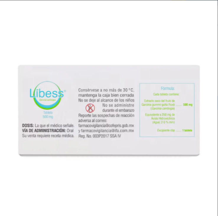 LIBESS 250mg (apetito, control de peso, obesidad) 30 tabletas