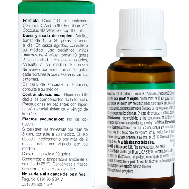En casos de mareo por viajar, tomar 10 gotas cada hora hasta que desaparezcan los síntomas.